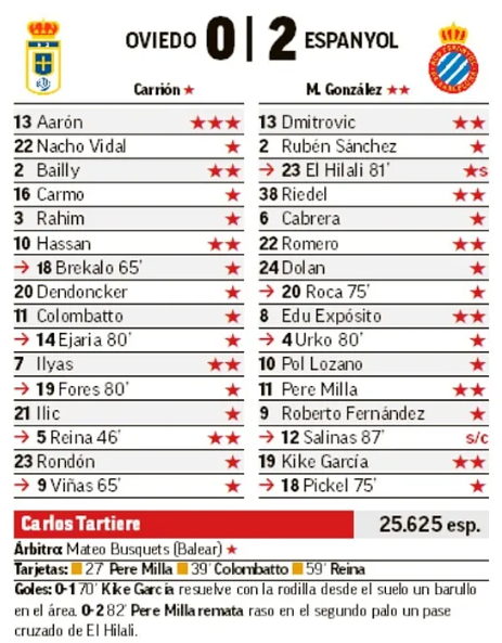 | Tarjetas Amarillas | 27′ Pere Milla |