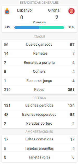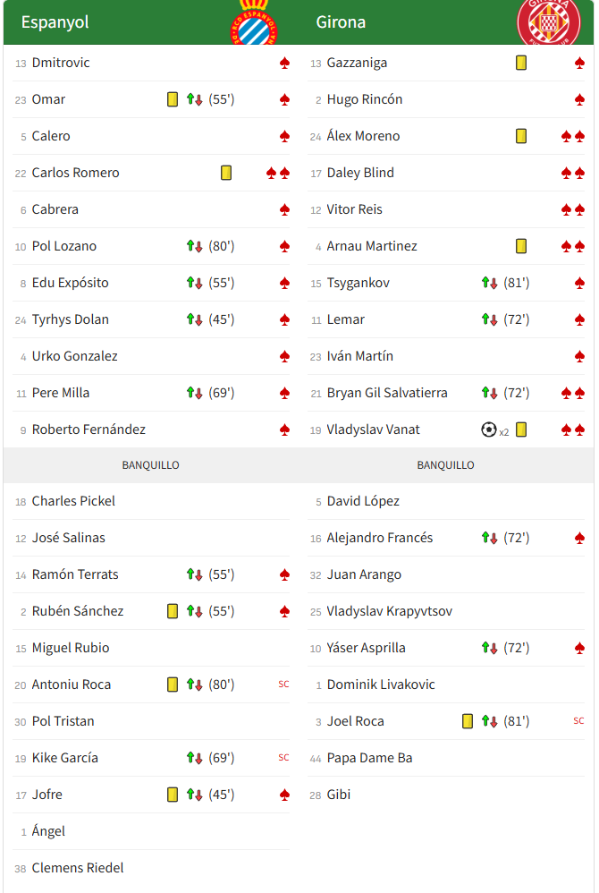 | Tarjetas amarillas | 45′ Omar 77′ Ruben Sanchez 81′ Jofre 84′ Antoniu Roca 89′ Carlos Romero |