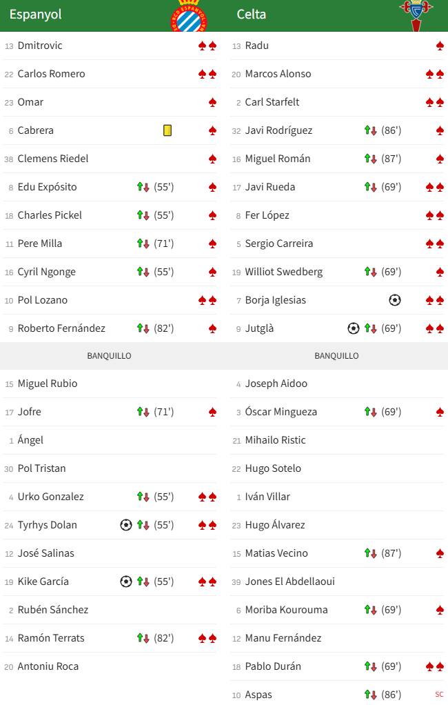 9Roberto Fernández82′14Ramón Terrats